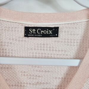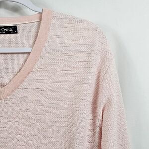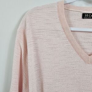 St. Croix Two Tone Texture V-Neck Sweater in Pink - Size L