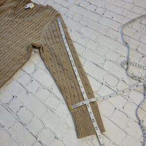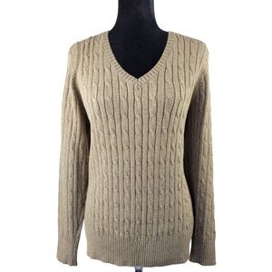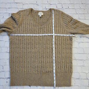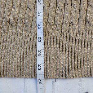 Gently used like new St.John Bay woman’s mustard with gold shimmer cable knit cotton blend sweater 1X plus size v-neck