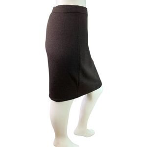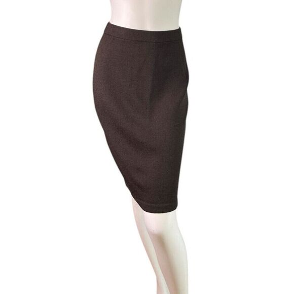This is a St. John Collection Santana knit pencil skirt in a chocolate brown, women's size 2. Made in Mexico. Excellent condition. Fabric: 50% wool, 20% Rayon. Measurements;