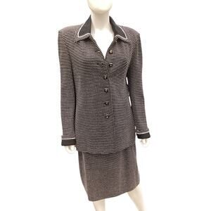 St.John Collection Women’s 2-Piece Set Size 10 Blazer + Skirt Ornate Buttons B&W