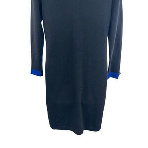 St.John Marie Gray Santana Knit Dress Colorblock Blue Black Button Down Size 2 *
