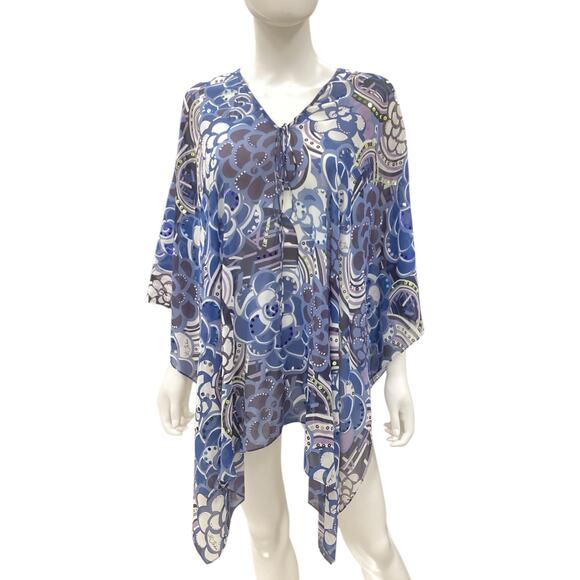 St.John Poncho Women’s 1Size Sheer Silk Overlay Sequins Silver Jets ShadesOfBlue
