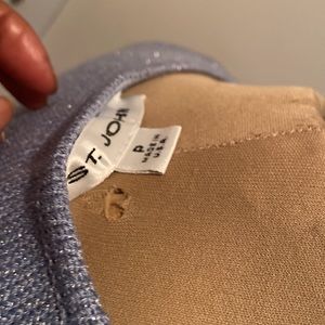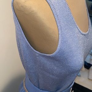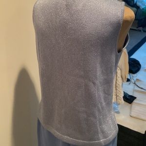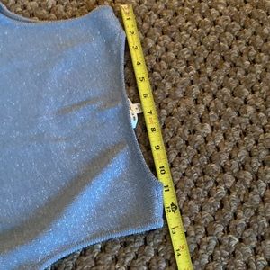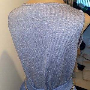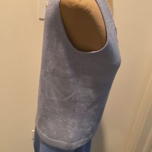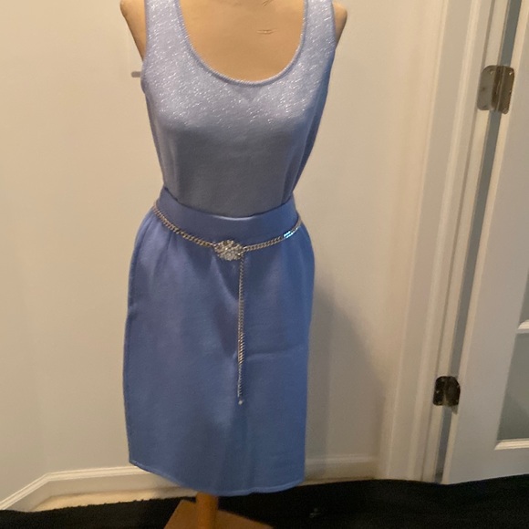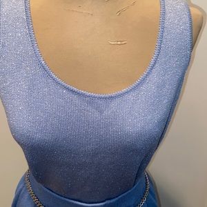 Stunning blue Santana knit pull over. Sparking & shimmering metallic silver throughout. Scooped neckline. EUC. Fits up to S/M comfortably. Skirt sold separately