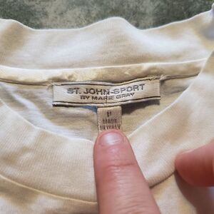 St John Sport by Marie Gray white tshirt sz P in good used condition with some wear as shown in the pictures.