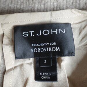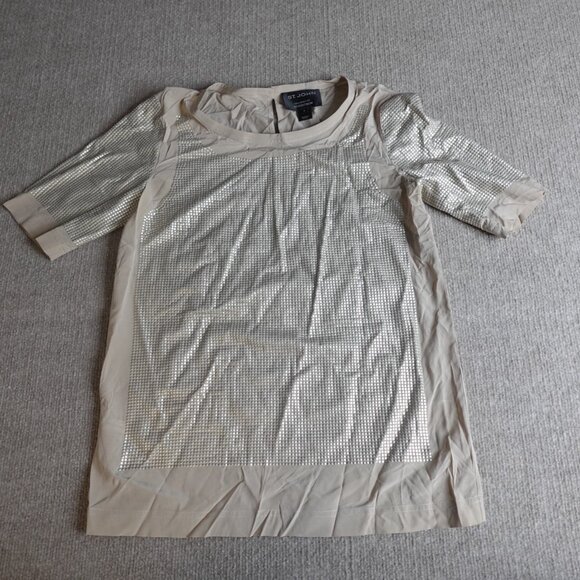 St.John Womens Top 2 Beige Metallic Silk Blend Short Sleeve
