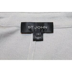 St.John santana knit gray long open front sweater jacket pockets USA short sleeve Size 10 notch collar. Beautiful gently worn pre owned condition. Ready to wear, recent black label St. John. Measures 25" chest and 38.5" length. Fast professional shipping. 20 8/25/2025