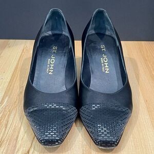 Very nice St. John Black Sequin Cap Toe Slip On Pump. Size 8.5B. No stains or damage. Heel is 2.25”. Uppers are in excellent condition and all sequins are present. Footbed looks great. Heel is in very nice condition and soles are still very nice. From smoke free pet free home. See pics.