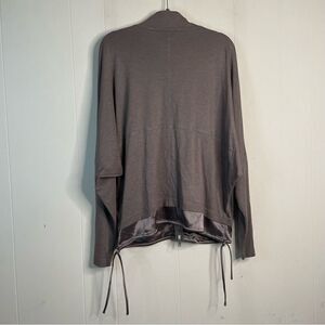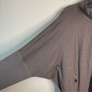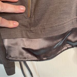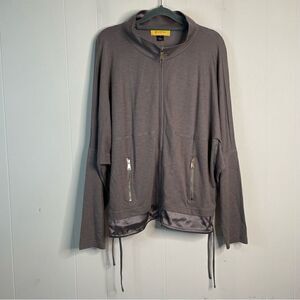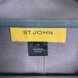 This amazing St. John jacket is in excellent pre-owned condition. It's tan and zips put the front. The pockets zip as well. The hardware is gold. The sleeves are Dolman sleeves. The bottom has a piece of satin with a drawstring closure. You can feel the quality of the jacket for sure!