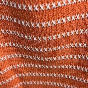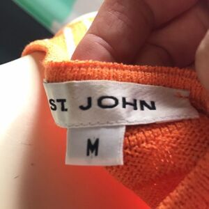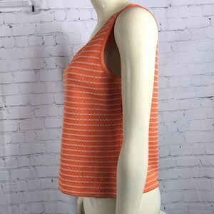 St John Orange Knit Womens Size M Shell Tank EUC Bright Orange with white Xs throughout the tank. Measures 19” shoulder to waist and