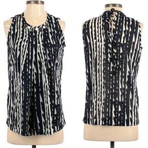 St. John SoCa Cotton Sleeveless Pleated Jewel Neck Tie Back Striped Navy Sz S