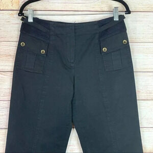 St.John Sport Wide Leg Fashion Fit Pants Women's Size 8 Black Stretchy Adjustable Waist Trouser
