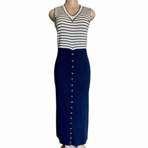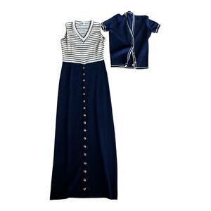 St.John knits Navy Blue and cream Button-Down Maxi dress with cardigan