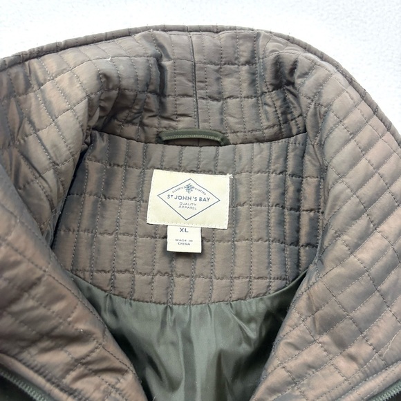 St.John’s Bay Black/Green Quilted Crop Neck Snap Waist Zip Jacket Size XL