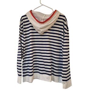 St. John's Bay Women's Navy & White Striped Cotton/Poly Lightweight Hoodie NEW
