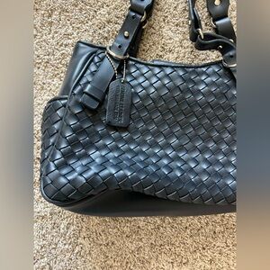 St.Johns Bay genuine leather shoulder bag dark navy almost black