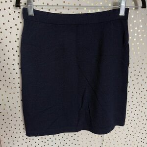 This elegant blue mini pencil skirt by St. John is perfect for work or cocktail events. Its sleek, tailored silhouette and minimalist design offer a sophisticated and versatile look. Crafted from a structured fabric, it ensures a polished appearance for any occasion.