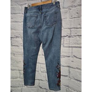 St. John's Bay Skinny leg jeans. Roses floral design on pant legs. Approximate measurements: Inseam 25" inches, waist 16" inches, length from top of waist to bottom of leg 36" inches and hips 18" inches. In great shape.