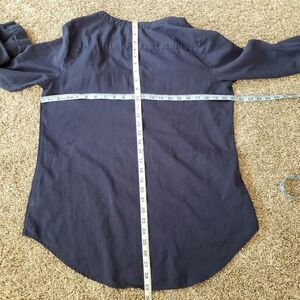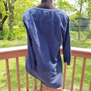St. John's Bay Long Sleeve Cotton Blouse. This top has 2 front real pockets, v neck, 3 buttons, high front, longer in the back. Lightweight and comfortable, perfect for spring thru fall season!