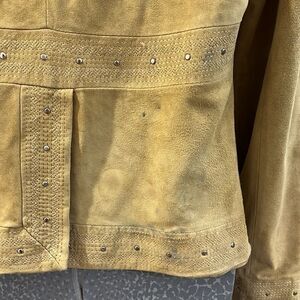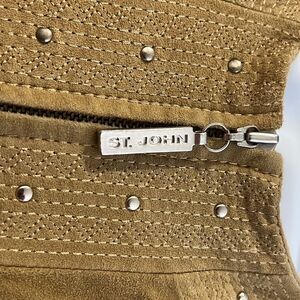St. John Sport Leather Jacket in great condition, it shows normal wear, have few spots that needs a cleaning, please see all pictures. Since the jacket doesn’t have size, please see measurement pictures.