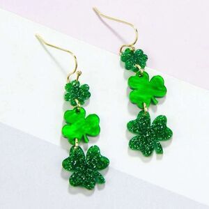 St. Patrick's Day Triple Shamrock 2" Drop Earrings