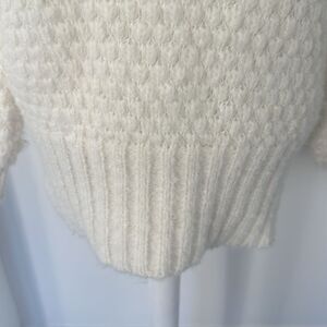 - Hand knit cardigan with a lacey pointelle stitch and rib trim