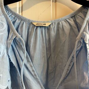 St Roche Virginia Sky Blue Women's Poplin Blouse with Eyelet Collar