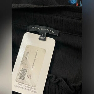 Staccato Womens BoHo Dress Small Black Tunic Shirred Neck Floral...New