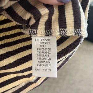 Chic tank top with brown and cream stripes. Ideal for layering or casual wear. Super stretchy