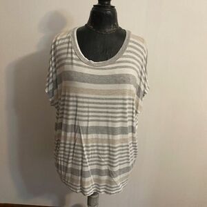Staccato Gray/White/ Tan stripe tunic, size L