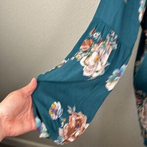 Staccato Green Boho Floral Long Sleeve Flowy Top Size Large