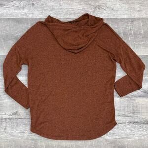 Staccato Knit Hooded Top Womens L Button Accent Rust Brown Lightweight Sweater