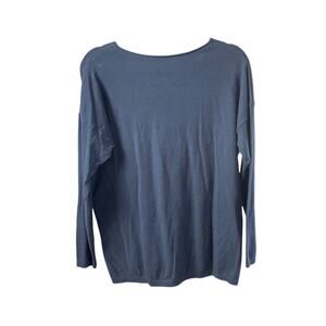 Staccato Muted Navy V-Neck Top LS Sweater, Lightweight, Casual, weekend, L