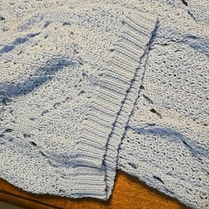 Chic open knit design. Soft and breathable. Ideal for layering with a t, sleeveless or sundress. 3/4 sleeve. Excellent condition, size S.