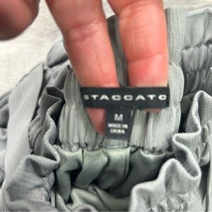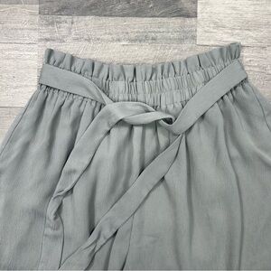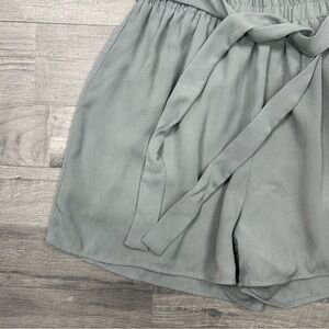 FEATURES: Women's gray tie waist lined flowy shorts. Shorts have elastic waistband with tie drawstring. Shorts are lined and flowy.
