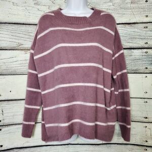 Staccato Mauve White Striped Soft Fuzzy Sweater Women’s Small Cozy Knit