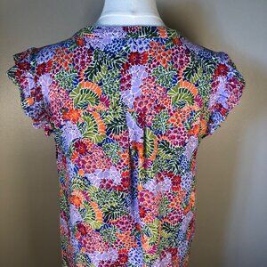Staccato Multicolor Floral Print Flutter Sleeve Lightweight Top Size L