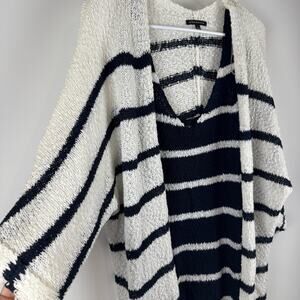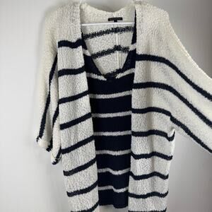 Staccato Navy Blue and White Striped Tank & Cardigan Sweater Bundle ~ L