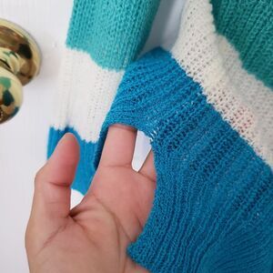 Staccato Rainbow Striped Open Knit Sweater Top Womens Size S