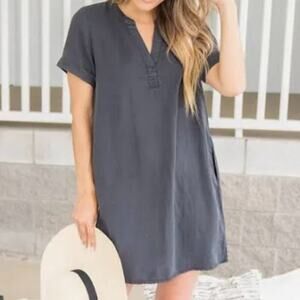 Staccato Summer of Ease size medium charcoal gray v-neck pocket Midi Dress