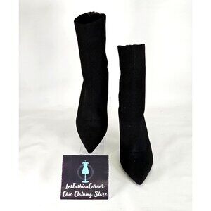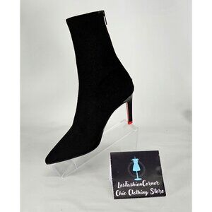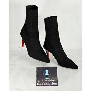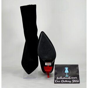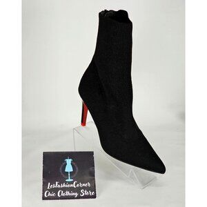 Staccato Women's Black Knit Pointed Toe Mid Socks Boots Red Heels Sz 9.5 40 314