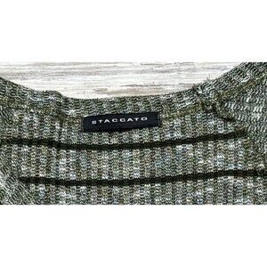 Staccato Womens Green Black Striped Long-Sleeve Sweater Tunic Top Knit Large