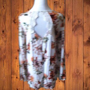 Staccato Women's Large Long Sleeve Floral Blouse with Crochet Lace Back Accents