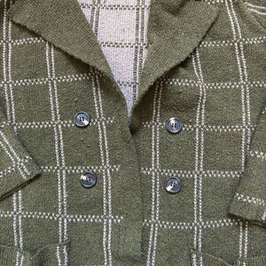 Staccato Womens Windowpane Knit Open Front Cardigan Sweater Olive Green Large