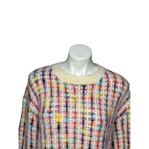 Staccato multi colored crew neck knit sweater size M. Style 52603DG. Great condition. 50% polyester 50% nylon. Length 25” Chest 19.5”.