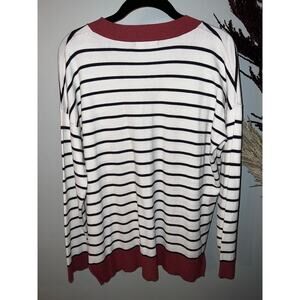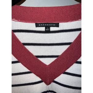 Staccato size L navy & white striped v-neck knit pullover sweater clay red trim