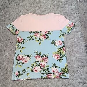 Staccato womens soft stretcy pink and light blue floral tshirt size small