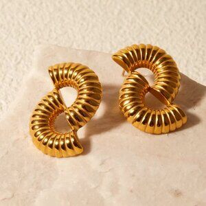 Step up your style game with these Waterproof Gold-Tone Semicircle Staggered Earrings. Featuring a bold and distinctive ribbed texture, these earrings are designed to catch the light and make a statement. Made from premium stainless steel, these earrings are waterproof and resistant to tarnish, ensuring they stay radiant and beautiful no matter the occasion. Their unique, staggered semicircle design offers a modern twist to your jewelry collection, making them the perfect choice for everyday elegance or special occasions.