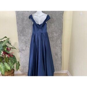 Stacees Formal maxi Gown women's size 16 Royal Blue Prom Wedding Gala w train full skirt pleated cross over front off shoulder.