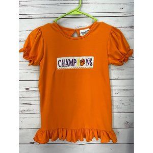 Staches & Lashes Smocked Girls Clemson Orange Short Sleeve Blouse Size 6T