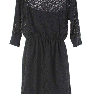 Staci Woo $88 Sz M Black Lace 3/4 Sleeve Cotton Nylon Poly Blend Dress